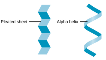 - It includes alpha – helix (coild structure) and beta – sheets (folded, sheet like).